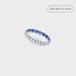Material: Plata 925 con baño de rodio. Medidas: 0.3 cm de ancho (banda). Color: Plateado. Características: Eternity, con circones en tono azul zafiro.
