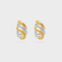 Diseño bicolor con líneas entrelazadas que crean un efecto de movimiento y volumen. Su contraste entre dorado y plateado aporta un toque moderno y versátil, perfecto para elevar cualquier look.