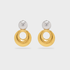 Con una silueta moderna y armoniosa, estos aretes combinan el brillo plateado y dorado en un diseño circular que aporta equilibrio y sofisticación. Un toque contemporáneo que se adapta a cualquier estilo.