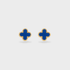 Estos aretes tipo stud de chapa de oro combinan una silueta floral con esmalte azul profundo, enmarcados por un delicado borde de bolitas doradas. Son ideales para dar un toque sofisticado pero moderno a cualquier look, tanto de día como de noche.
