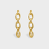 Estos aretes de chapa de oro de 18k están compuestos por eslabones dobles entrelazados que crean una silueta rítmica, moderna y con movimiento. Su diseño audaz pero equilibrado los convierte en el acento perfecto para looks minimalistas o para dar contraste a outfits más clásicos. Ligeros, con mucha presencia visual y llenos de estilo.