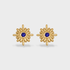 Material: Acero Inoxidable 316L Gold Plated 14K. Medidas: 1.2 cm de ancho x 1.2 cm de largo. Color: Dorado. Características: Con circonia azul. Cierre de mariposa.