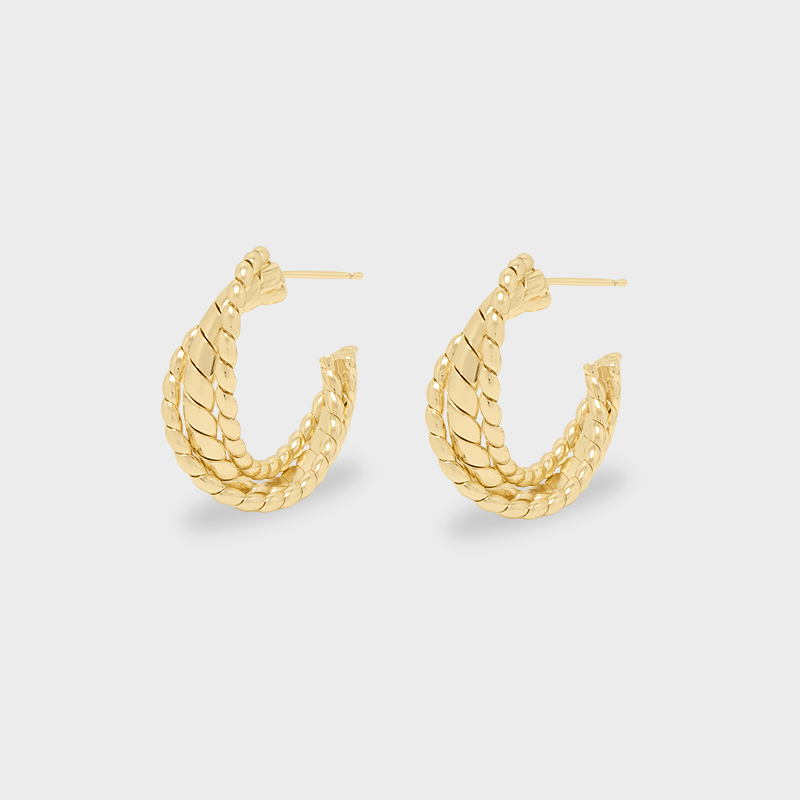 Estas arracadas de chapa de oro destacan por su acabado tipo trenzado que aporta profundidad y un brillo elegante. Su forma envolvente y su tamaño las hacen ideales para elevar looks cotidianos o complementar outfits más arreglados. Una pieza llamativa pero fácil de llevar, perfecta para quienes buscan un básico con personalidad.
