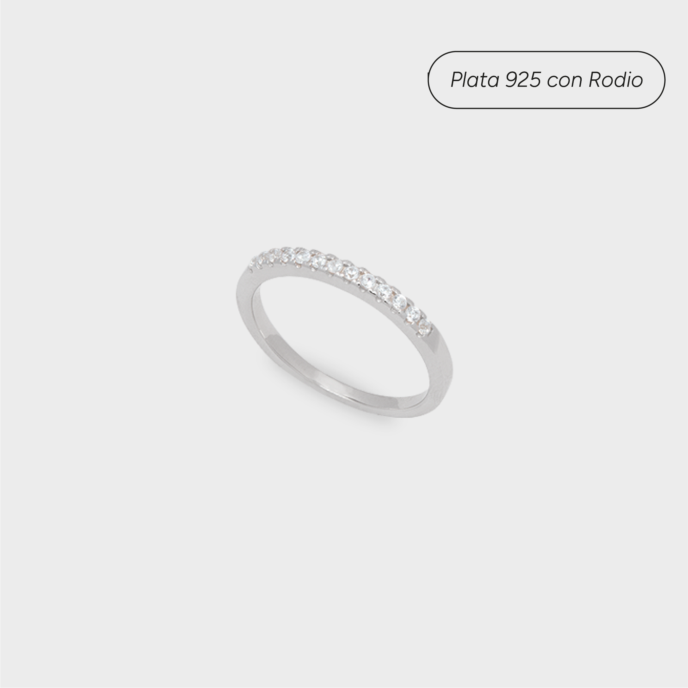 Clásica y sofisticada, esta churumbela está elaborada en plata 925 con baño de rodio para un acabado brillante y duradero. Su diseño tipo anniversary band luce una hilera continua de circones corte brillante engastados en estilo fishtail pavé, que maximiza la luminosidad de cada piedra y aporta un resplandor elegante y atemporal. Perfecta para llevar sola, en stack con otros anillos o como complemento de un anillo de compromiso.