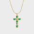Cadena tipo bolitas con dije en forma de cruz adornado con circones verde esmeralda enmarcados por un halo brillante. Su diseño simétrico y el contraste de tonos evocan un estilo gótico moderno: elegante, intenso y con carácter. Una pieza que destaca por sí sola y transforma cualquier look.