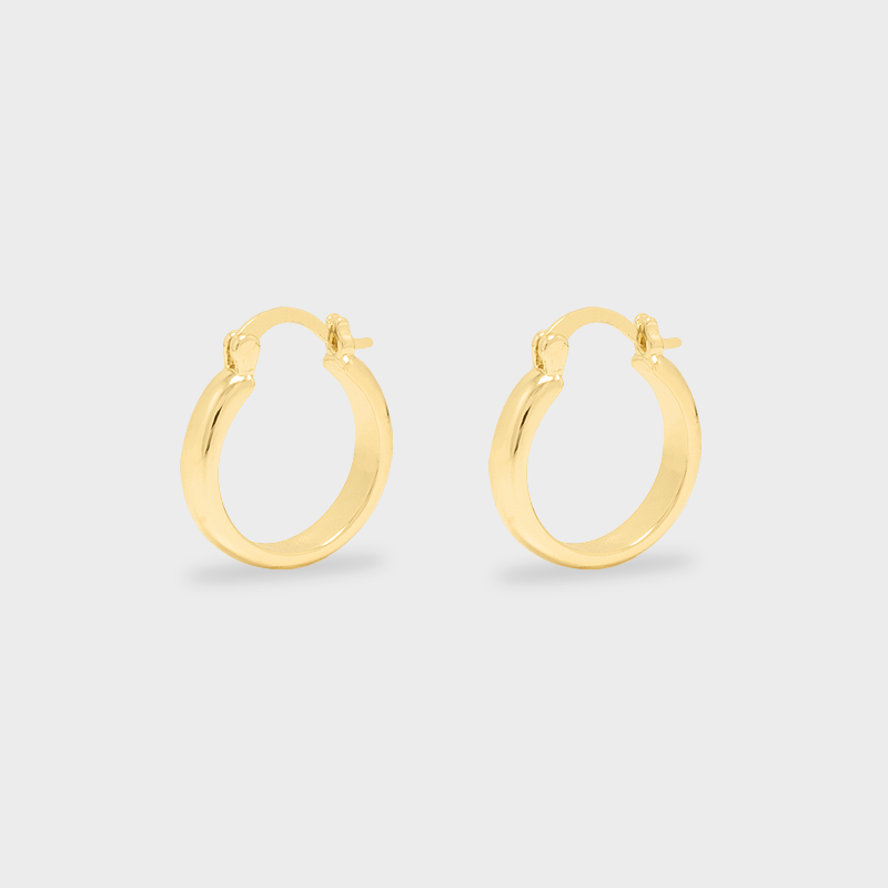 Clásicos, versátiles y con el brillo justo. Estos huggies de chapa de oro son el esencial perfecto para usar todos los días sin dejar de verte elegante. Su diseño compacto los hace ideales para combinar con otros aretes o llevar solos para un look minimalista. Ligeros, cómodos y con cierre de bisagra que asegura un ajuste firme.