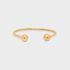 Material: Acero Inoxidable 316L Gold Plated 14K. Medidas: 6 cm de diámetro x 0.3 cm de grosor. Bolitas de 1 cm. Color: Disponible en Dorado y Plateado. Características: Pulsera abierta.